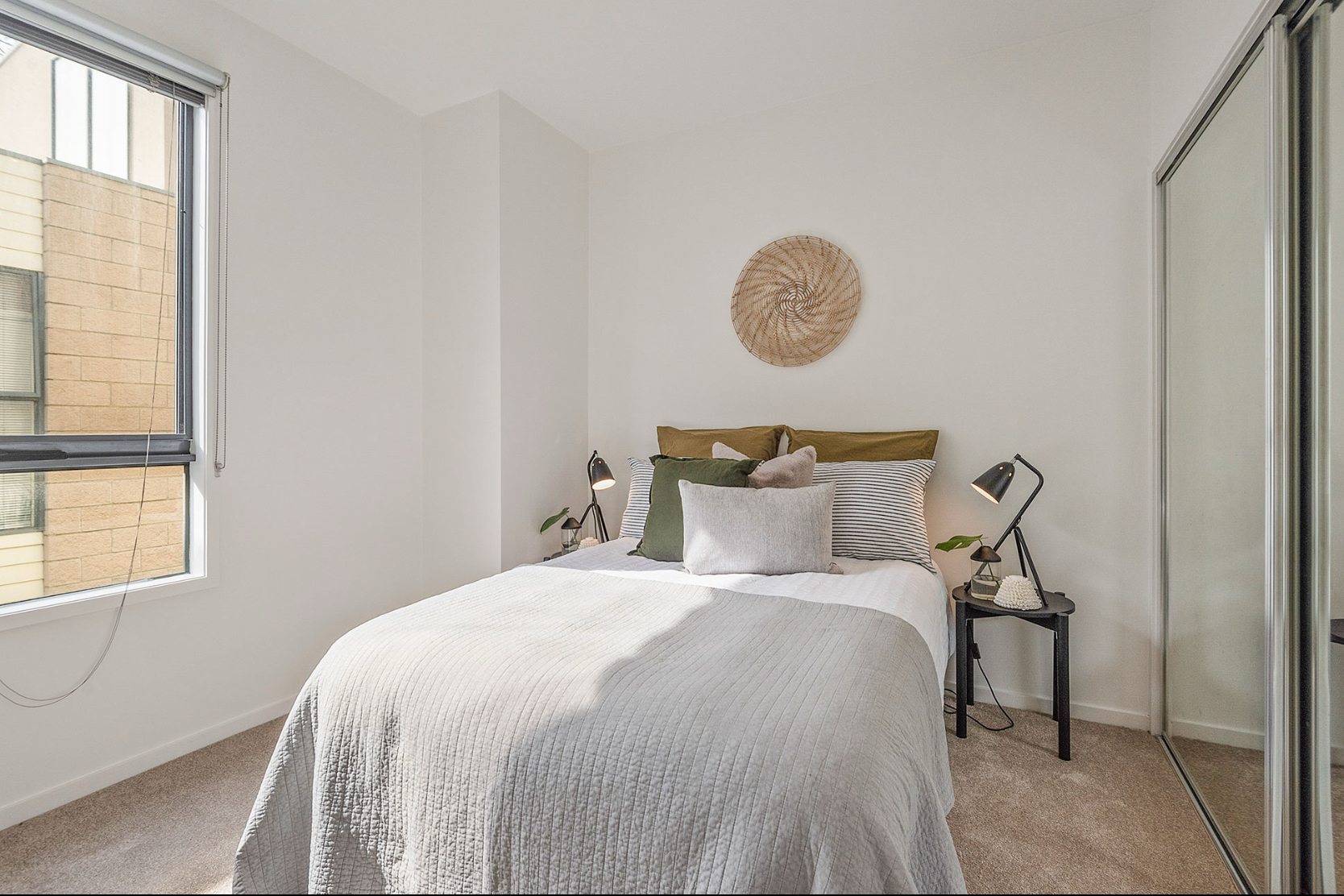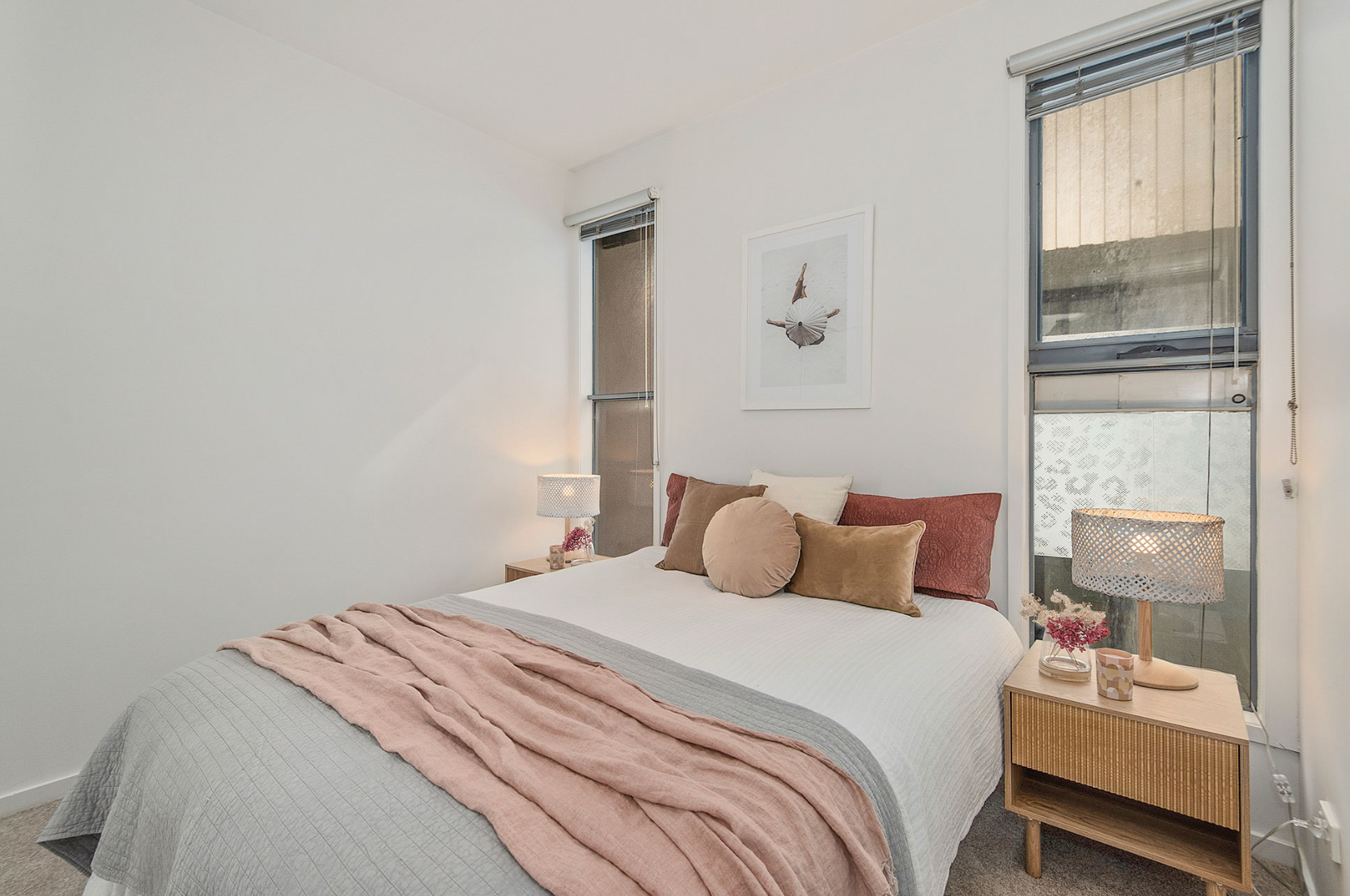 This two bedroom townhouse ideally situated at the rear of the building comprising kitchen with stainless steel gas cooking facilities, dishwasher and loads of storage cupboards. Overlooking open plan living with access to great sized balcony, split system. Upstairs leads to work from home study nook, master double sized bedroom with mirrored built in robes and split system, centralised bathroom with separate bath and separate shower, second bedroom with built in robes also of equal size. European laundry and off street parking for one vehicle. Security entrance. Public transport at your doorstep and an array of cafes and eateries within walking distance.