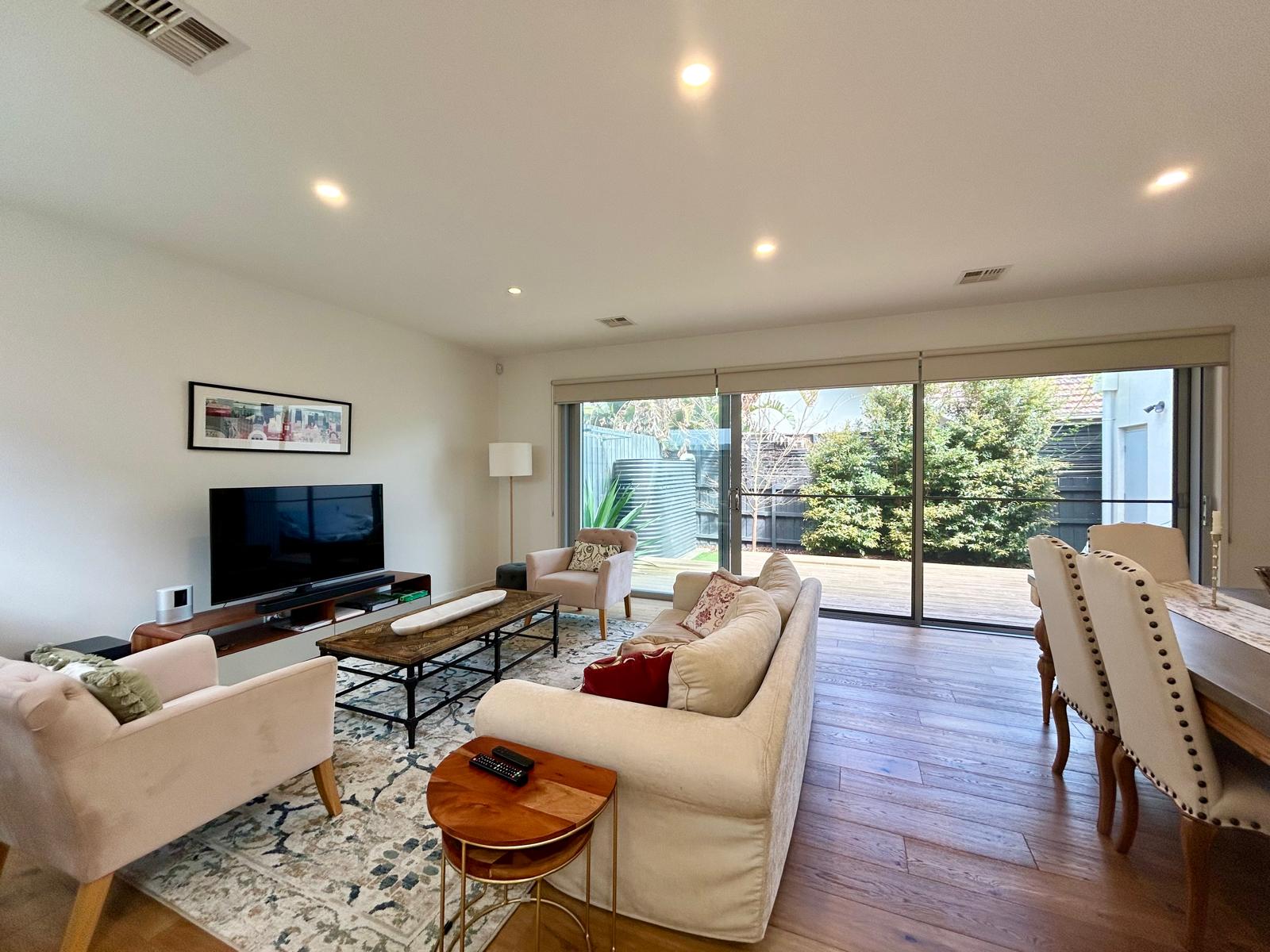Recently built three bedroom town residence comprising nothing but the best! Entrance hall, spacious master bedroom with walk in robes, en-suite bathroom with his and her basins, double sized shower with rain head shower, guests powder room, separate functional laundry with loads of storage cupboards, bright practical kitchen with stainless steel SMEG cooktop, integrated dishwasher and loads of storage cupboards, separate butlers pantry, open plan living overlooking tri-sliding doors to decked entertaining area. Low maintenance garden with water tank and gas plumbing for your own BBQ. Upstairs leads you to the kids rumpus area, two further bedrooms with built in robes, centralised bathroom with his and hers basins, double sized shower with rain head, magnificent plunge bath, separate toilet, separate study desk area. This gorgeous home also offers double remote control garage with internal access, alarm system, visual intercom, TV points in each bedroom, ducted heating and cooling. This gorgeous home is ideally located in all Beaumaris has to offer.